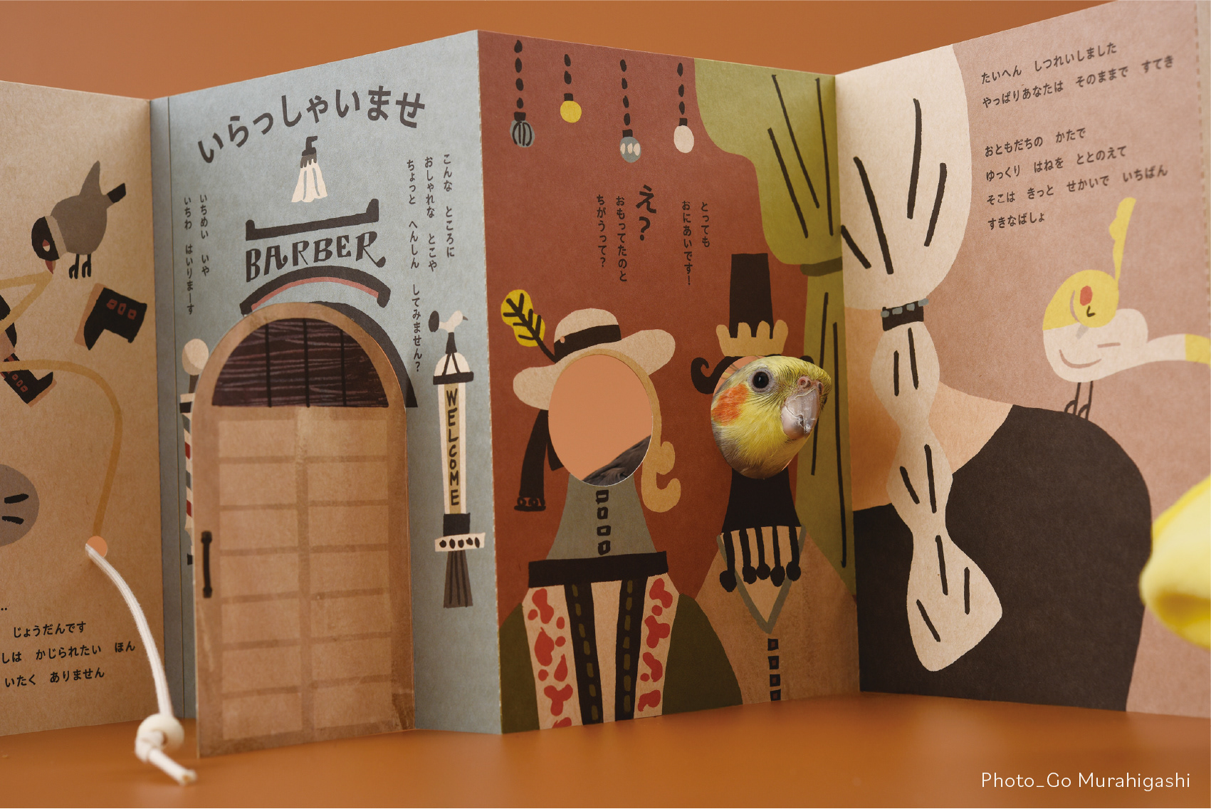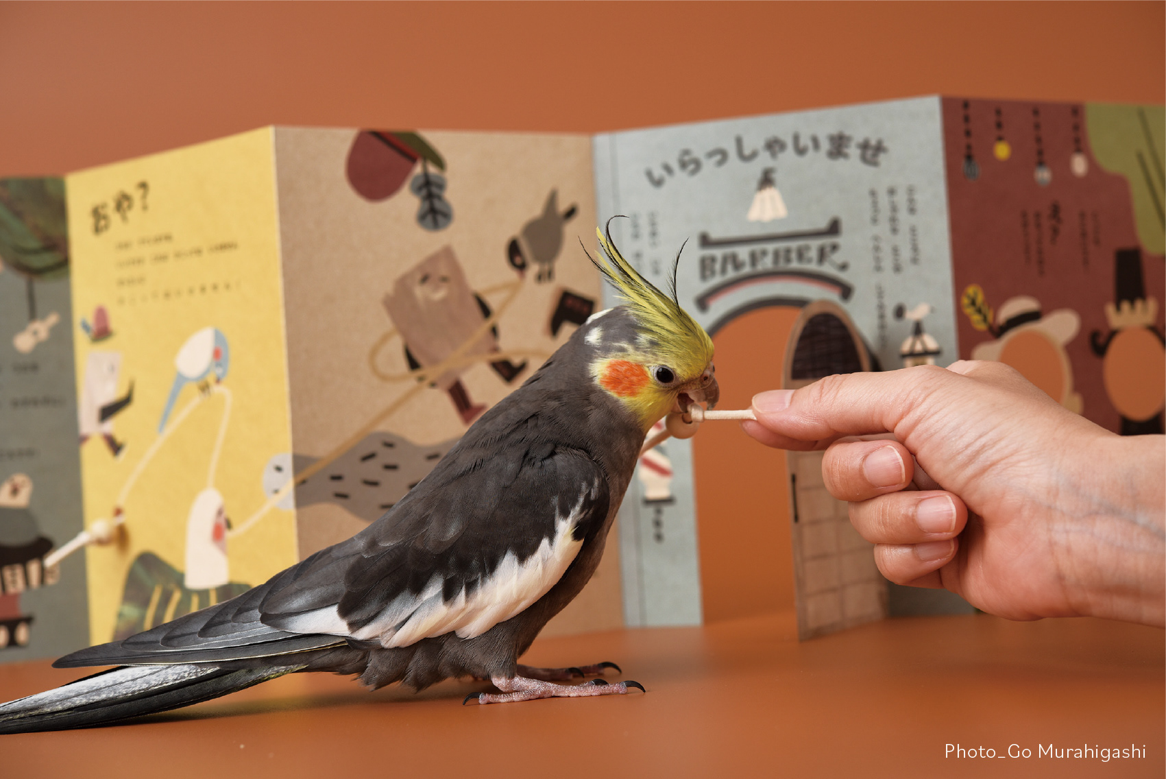 愛鳥のオカメインコが色んな紙を齧ってしまうことから、「鳥と飼い主が楽しく遊べて、齧っても怒られない鳥用のしかけ絵本があったら面白いのでは」というアイデアのもと実現したプロダクト。鳥と人が一緒に遊べる仕掛けを絵本に盛り込み、愛鳥と飼い主の絆が深まれば、との思いを込めて作りました。